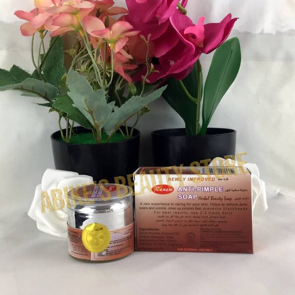 Renew Anti Pimple Soap and face cream offers a smooth and spot free face. Today many people are suffering from acne and pimples breakout. This anti pimple soap and cream will help to remove pimples and maintain a healthy beautiful skin. This Renew Anti-Pimple Soap and Cream also helps to remove black spot and wrinkles. For best results use 2 Or 3 times a day.