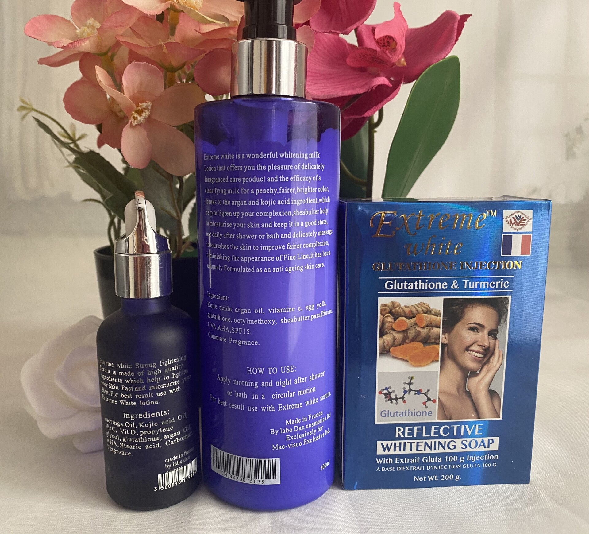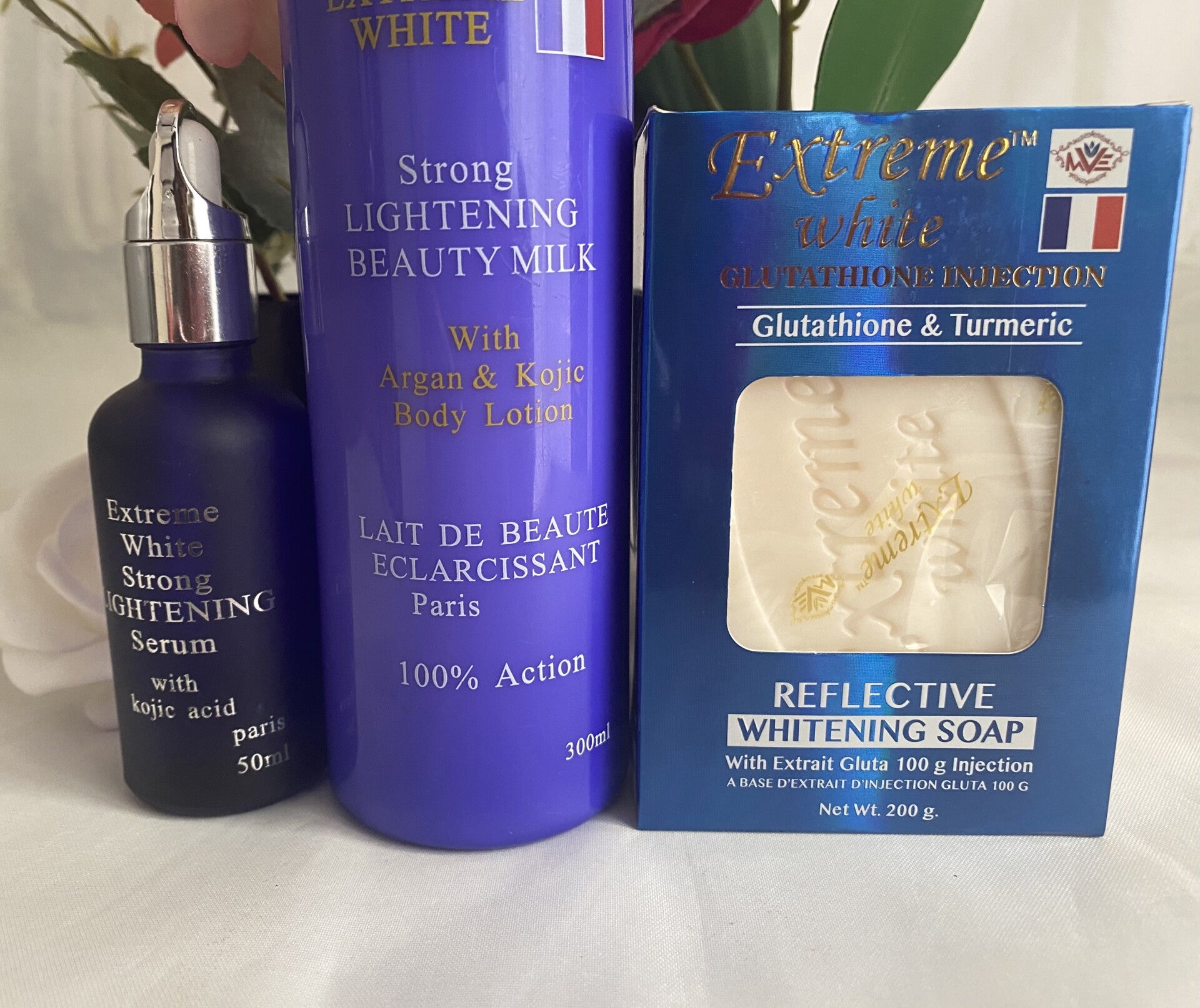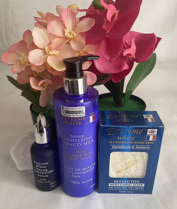Extreme White With Argan Oil and Kojic Strong Milk 300ml, Serum 50ml, Soap 200g